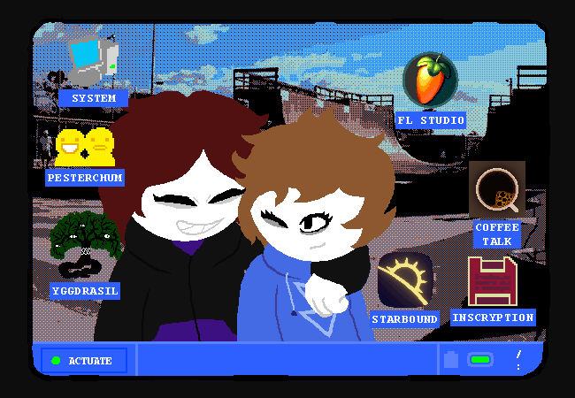 i draw, i write, i music, i program, i graphics design, other things too? you're probably here for my art and graphics design though. this is just a site to show people stuff i made and convince people that